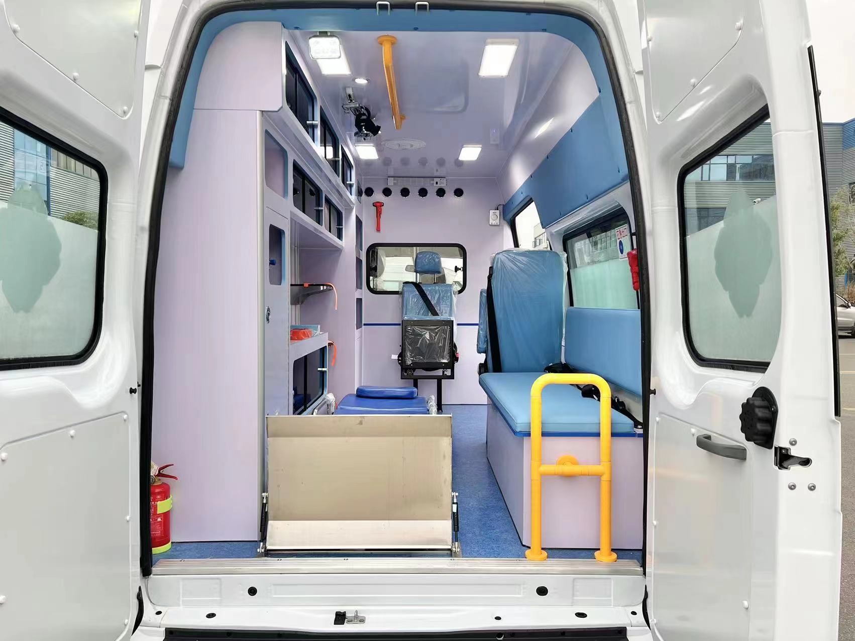 Nowa generacja PRO Long Axle Fuxingding Ambulance jest wyposażona w Ford New Generation Transit PRO Long Shaft Center Top (modyfikacje modelu MT. W modelu zastosowano silnik wysokoprężny Ford PUMA 2.198L o prędkości do 145 km/h; z Bosch ABS+EBD+ ESP, możliwe jest aktywne wykrywanie i analiza warunków drogowych oraz racjonalne korygowanie kierunku jazdy.Samochód ma nowatorski wygląd, rozsądną konstrukcję przestrzenną i bogatą konfigurację (zapraszanie do konfiguracji monitoringu przedszpitalnego oraz staranne zaprojektowanie wymagań przestrzennych i sugestii z głównych szpitali). Cały pojazd wykorzystuje wiodącą krajową technologię modyfikacji pojazdów medycznych, w tym system ambulansu, system ostrzegania, system elektryczny itp., używany głównie przez komisje zdrowia i planowania rodziny na wszystkich poziomach, średnie/duże szpitale i centra ratunkowe na wszystkich poziomach w celu ratowania i monitorowania rannych i chorych.